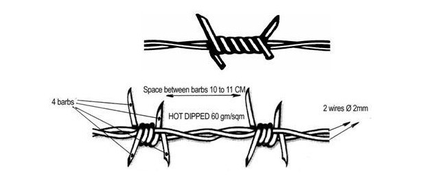 Özellikler: IOWA tipi, 2 ipliklerini, 4 puan. Barbs 'mesafesi 3-6 inç (Tolerans + - 1/2 ").
